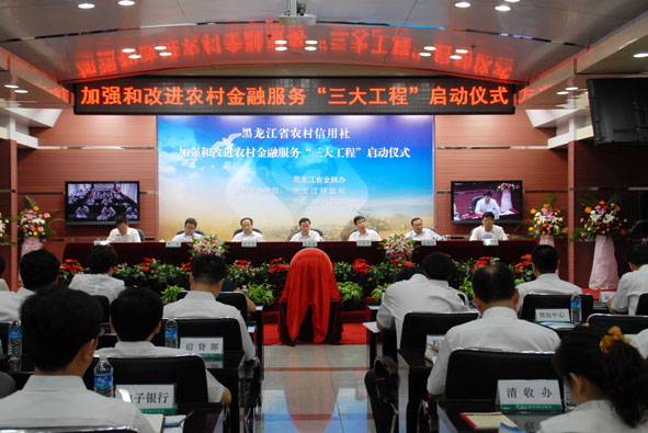 为进一步提升农信社支持“三农”科学发展的金融服务水平,更好地发挥农村金融主力军作用,全力推动我省现代化大农业发展,2012年7月10日,省政府金融办、省银监局和省农村信用联社联合举行了黑龙江省农村信用社加强和改进农村金融服务“三大工程”(金融服务进村入社区工程、阳光信贷工程、富民惠农金融服务创新工程)启动仪式。