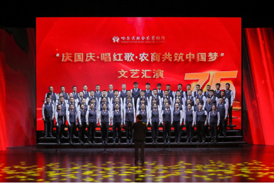 为庆祝中华人民共和国成立75周年,十一前夕,哈尔滨联合农商银行举办了“庆国庆 唱红歌 农商共筑中国梦”文艺汇演。全辖共计1000余名干部员工参加此次活动,同时邀请了100余位常年合作的客户代表观看文艺汇演。